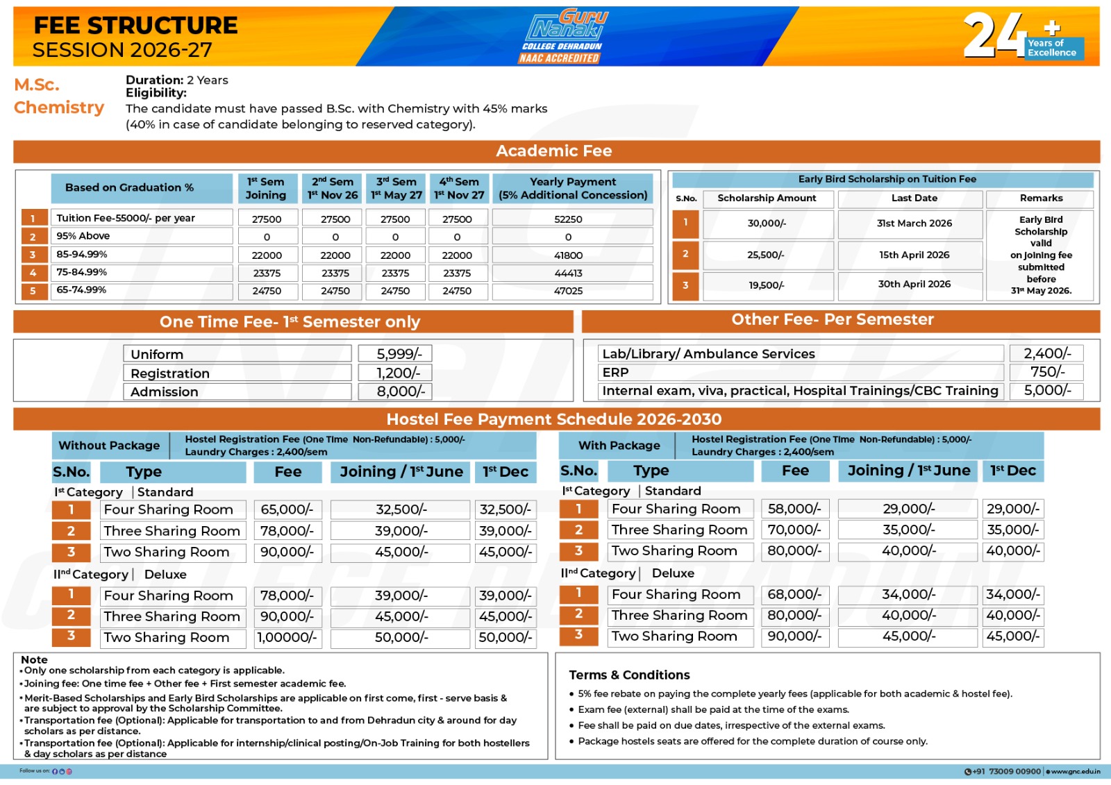 The Master of Science in Chemistry program at Guru Nanak College, Dehradun, is a postgraduate course designed for students seeking advanced knowledge in chemical sciences. This two-year program provides an in-depth understanding of the fundamental principles of chemistry and its diverse applications in research and industry. The curriculum covers core areas such as Organic, Inorganic, Physical, and Analytical Chemistry.